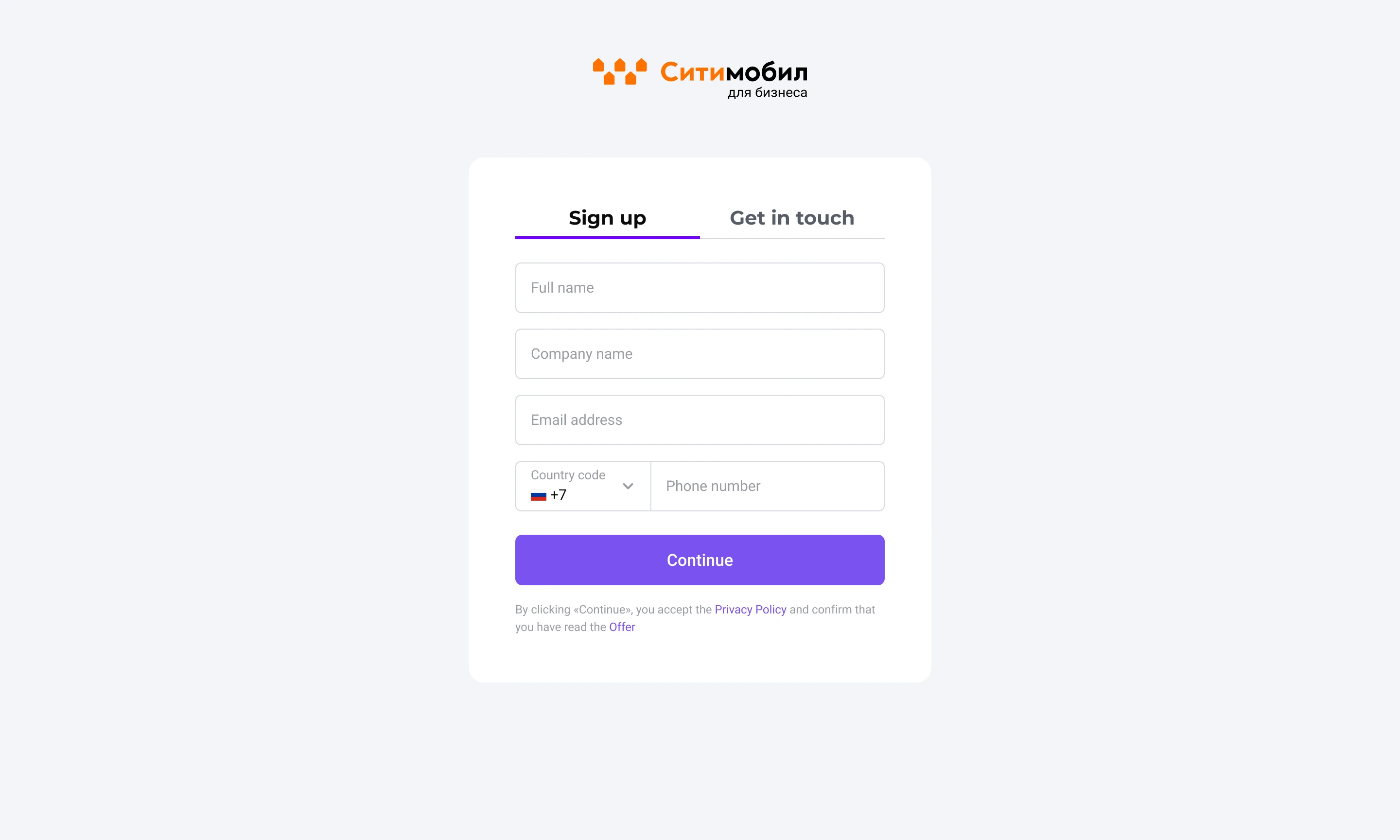 I used a clear layout and visual hierarchy to push users toward self-registration. I used a large primary button for the main sign-up action and a secondary button for the «Get in touch» option. All other minor actions were styled as simple text links. This hierarchy helped users easily find and choose the faster, automatic path.